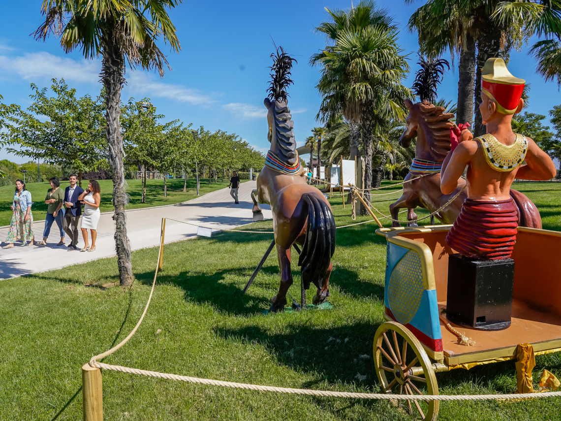 Torrejón de Ardoz, 11 de septiembre de 2024. La novedad más destacada de la programación del XIV aniversario del Parque Europa es la exposición “Tutankamón: La Magia del Faraón”, que tiene entrada gratuita y se podrá disfrutar hasta el 29 de septiembre, en el entorno de la Puerta de Brandemburgo y la Plaza de España. Una muestra enfocada, principalmente al público familiar, que realiza un viaje de 3.000 años en el tiempo a una tierra llena de pirámides, tesoros y faraones. El lago de Parque Europa se “trasladará” al Nilo; y el teatro griego hará revivir la época de Cleopatra, la última reina de Egipto cuyos orígenes, por cierto, eran griegos y no egipcios.