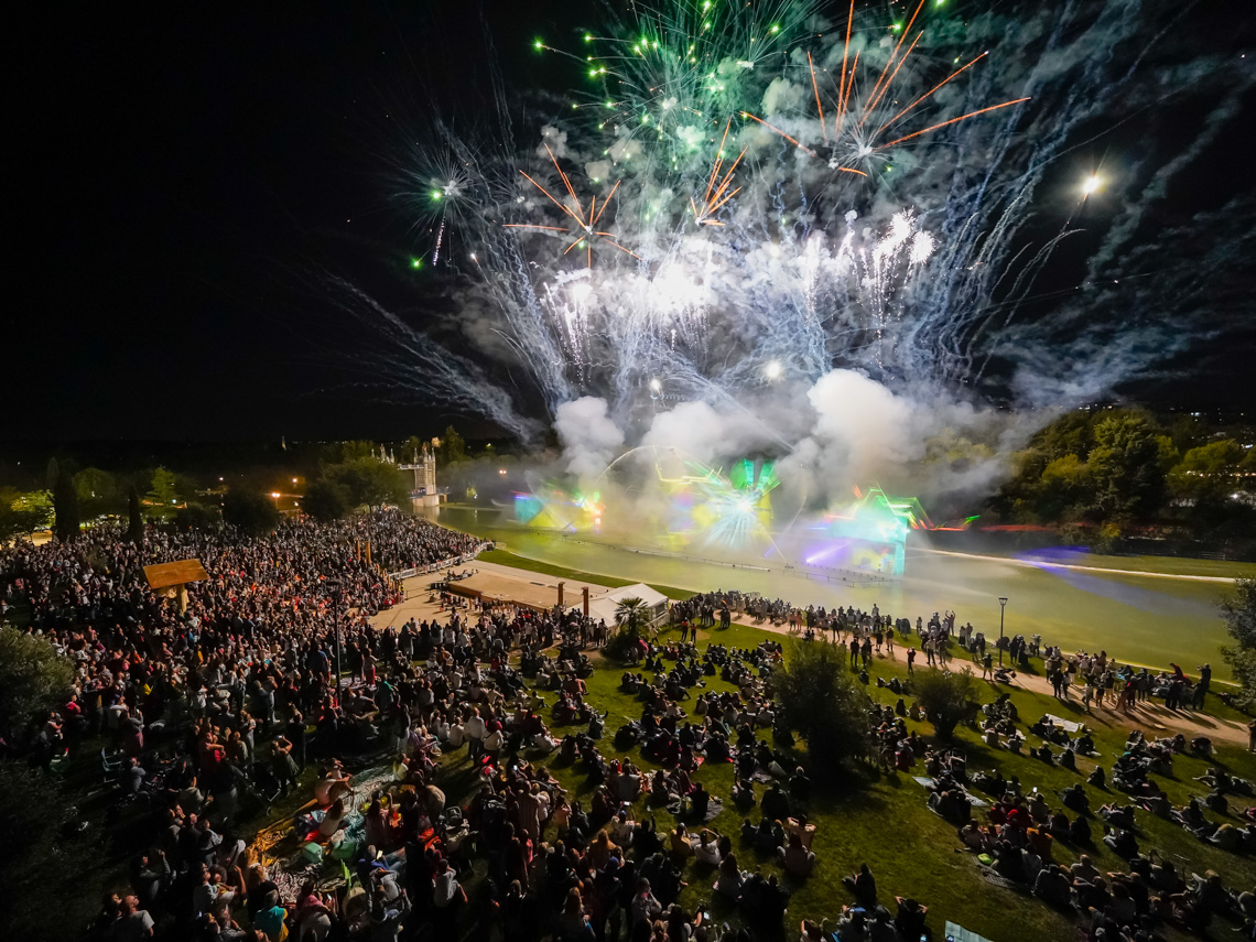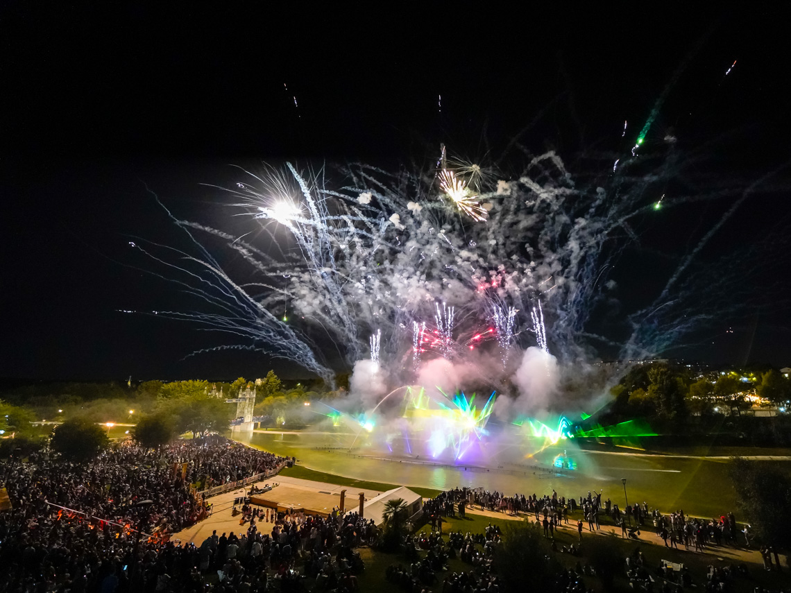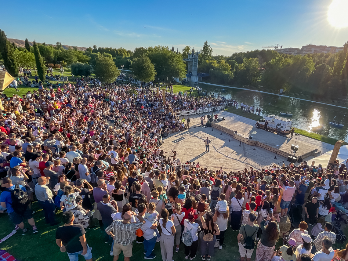Torrejón de Ardoz, 16 de septiembre de 2024. El sábado, 14 de septiembre, tuvieron lugar los platos fuertes de las actividades, con el Desfile Guachi en el que los amigos más entrañables de los niños recorrieron el Parque Europa, donde además hubo un Photocall y el show musical de Los Guachis en el Teatro Griego. Además, el broche de oro para acabar la jornada lo puso el Espectáculo Fuente “Energy” con final pirotécnico que congregó a multitud de personas. Asimismo, el reparto gratuito de tarta, la muestra de Animales de Fauna Aventura en el Teatro Griego que hizo las delicias de los asistentes, completaron la programación de este día.