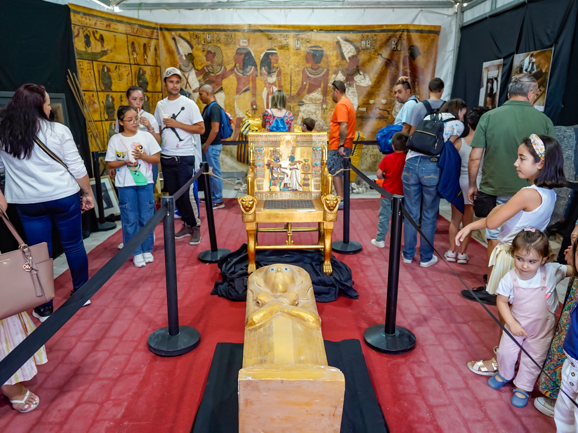 • También hay que destacar una de las novedades de este año que fue la exposición “Tutankamón: La Magia del Faraón”, que tiene entrada gratuita y se podrá disfrutar hasta el 29 de septiembre, en el entorno de la Puerta de Brandemburgo y la Plaza de España. Una muestra enfocada, principalmente al público familiar, que realiza un viaje de 3.000 años en el tiempo a una tierra llena de pirámides, tesoros y faraones. El lago de Parque Europa se “trasladará” al Nilo; y el teatro griego hará revivir la época de Cleopatra, la última reina de Egipto cuyos orígenes, por cierto, eran griegos y no egipcios